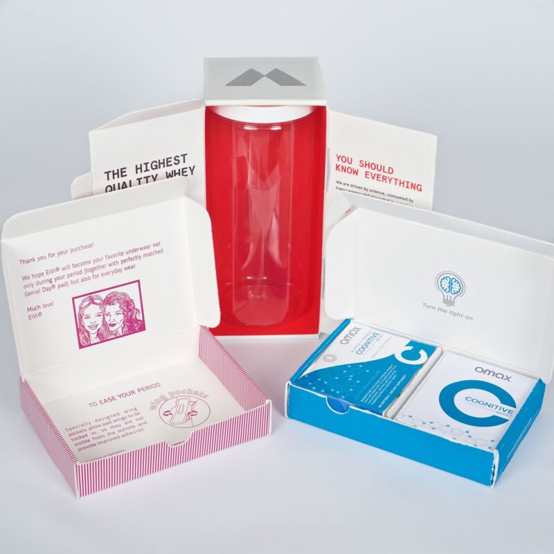 Modern High Tech – Here is when our ability to create unique shapes and sizes of boxes and internal packaging inserts sets us apart from most other e-commerce packaging suppliers. With our litho label and digital printing capabilities, sharp laminated colors are possible. Also foil or metallic looks are also within our capabilities.